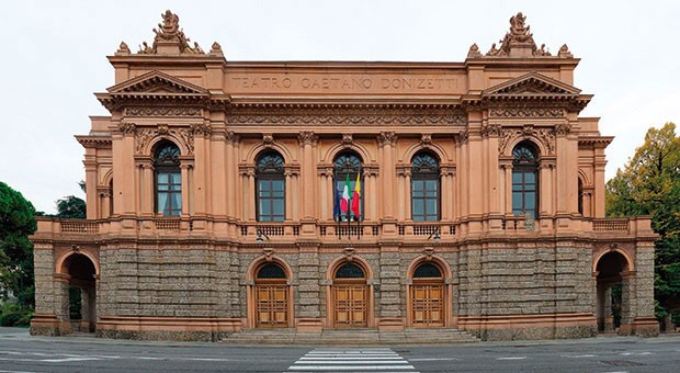 Sul Sentierone si affaccia Il Teatro Gaetano Donizzetti del XVIII secolo.