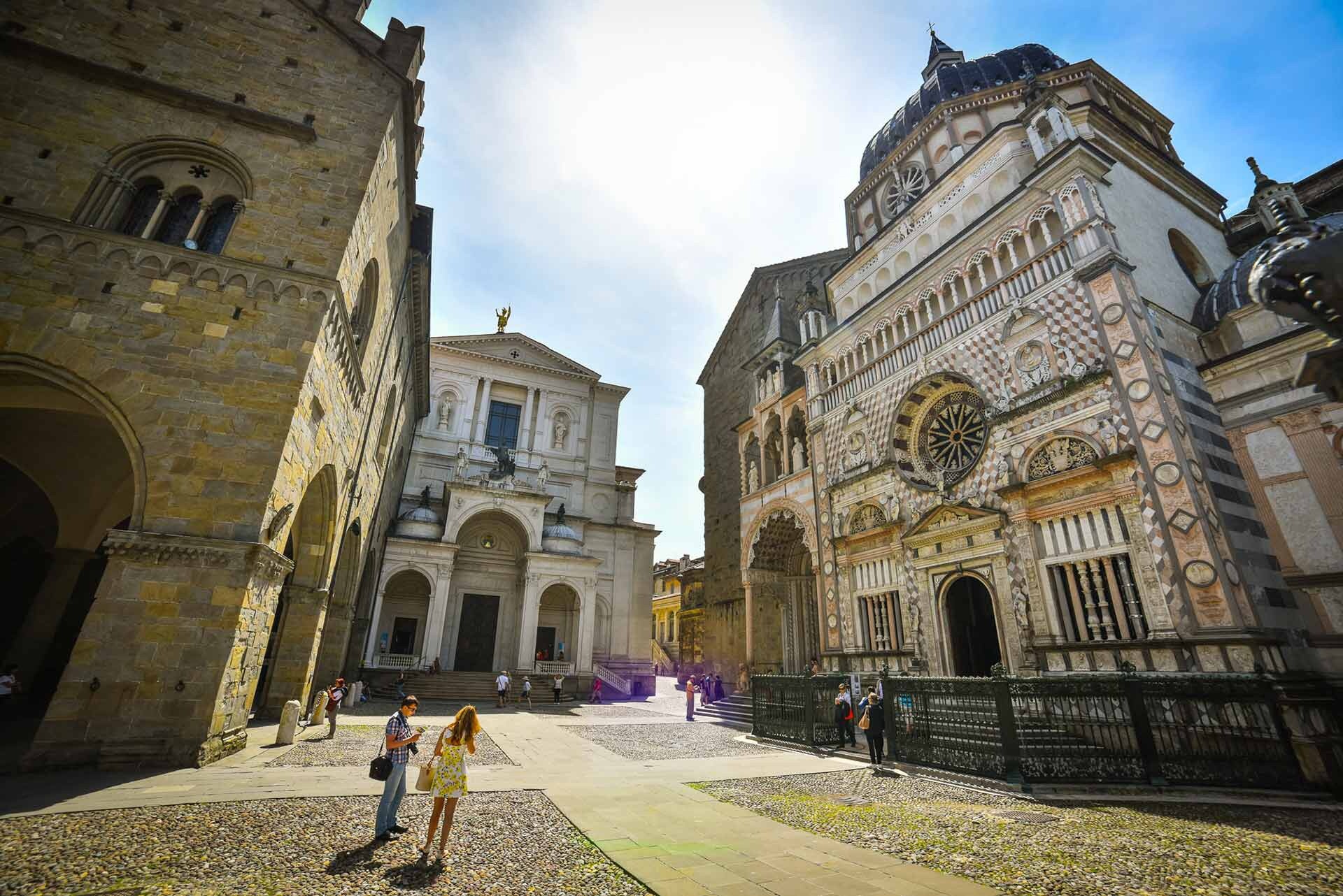 Aldilà del palazzo della Ragione si trovano Il duomo di Sant’Alessandro, la Basilica di Santa Maria Maggiore e la Cappella Colleoni.