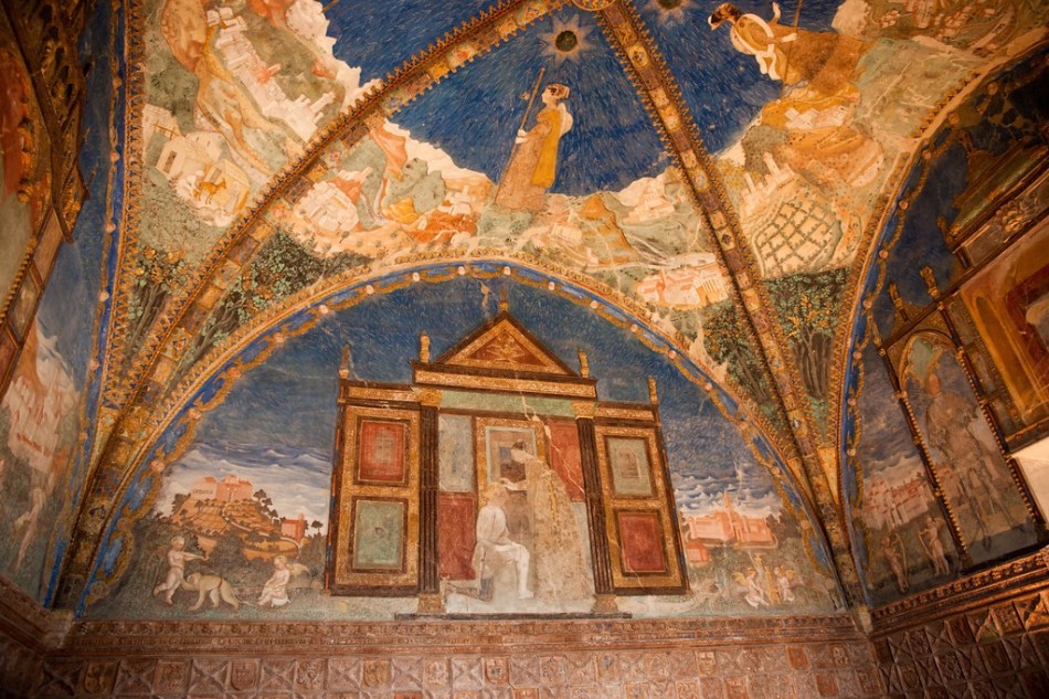 con volta a botte decorata con un affresco trompe-lœil. La camera d’oro con affreschi attribuiti a Benedetto Bembo fu la camera da letto degli innamorati