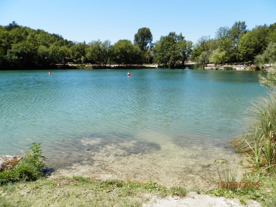 È alimentato da due sorgenti potabili, una delle quali da il nome al lago ed è circondato da un fitto bosco. Alcuni rami toccano l’acqua e permettono il loro utilizzo come trampolini per i tuffi.