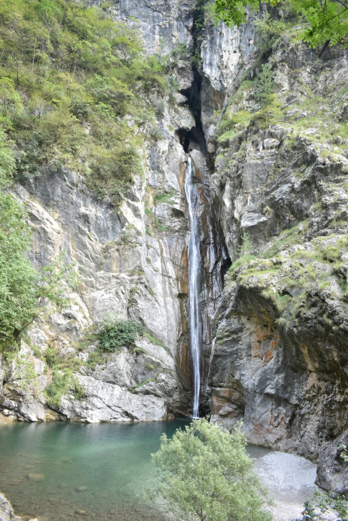 Per raggiungere la cascata, di cui vi ho accennato prima, si parte dal parcheggio e si cammina per pochi minuti, costeggiando il torrente.