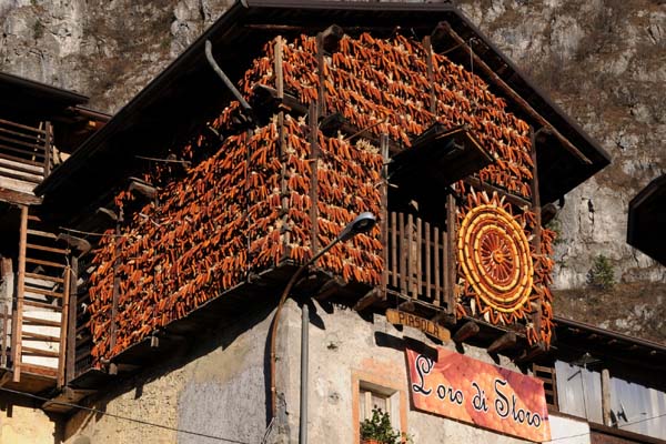 Per questo fine settimana facciamo sosta a Storo, un piccolo borgo in provincia di Trento, famoso per la farina gialla, prodotta dal grano Marano, coltivato seguendo i cicli della natura, senza forzature. Essendo un grano rossiccio la farina ha una colorazione molto intensa facilmente riconoscibile e molto digeribile.
