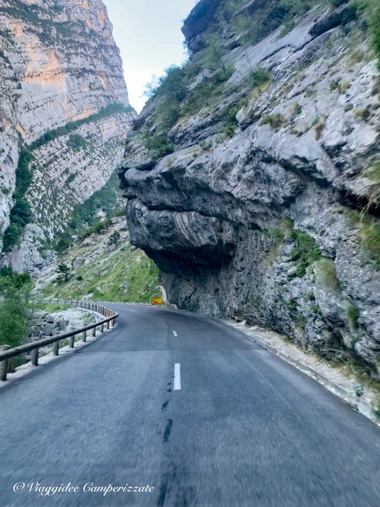 Partendo da Castellane si percorre il primo tratto con rocce sporgenti sulla strada, che fanno pensare di non poter passare con il camper, poi si arriva al parcheggio di Point Sublime da dove partono vari sentieri trekking.